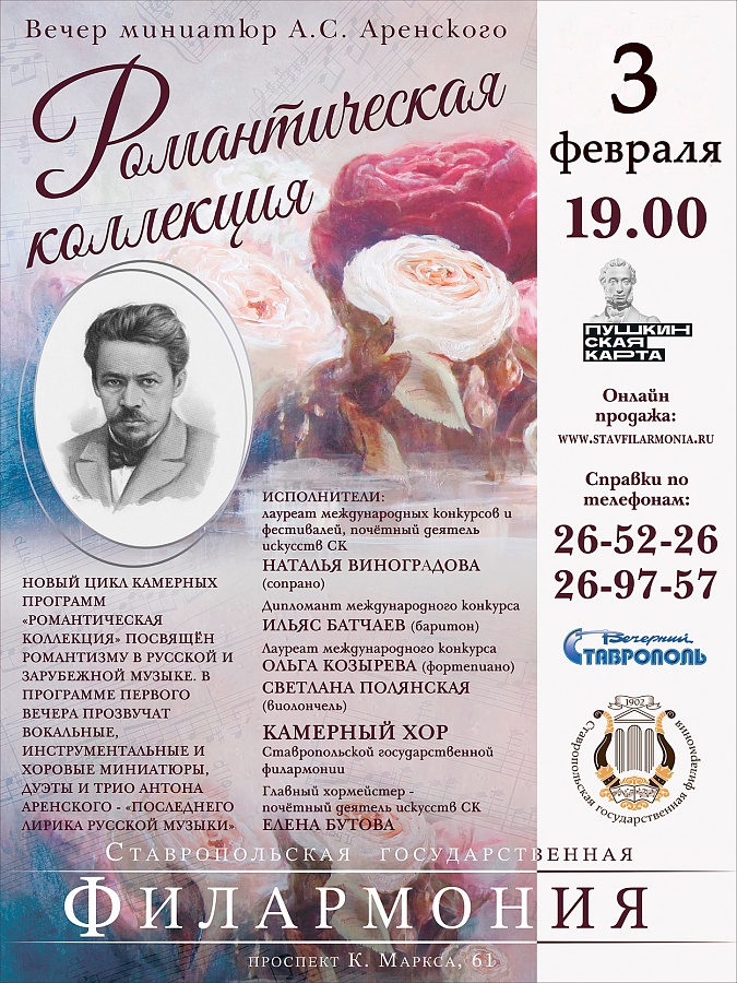 3 февраля в зале Ставропольской филармонии состоится первый вечер из серии «Романтическая коллекция»