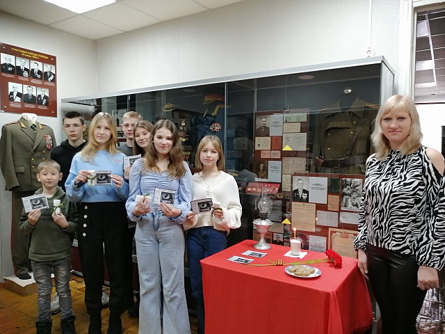 В проведении акции нам помогала волонтер Малахова Татьяна. Экспозицию посвященную Великой Отечественной войне посетили учащиеся МОУ СОШ № 16,№ 2 и ребята студенты АСХК.