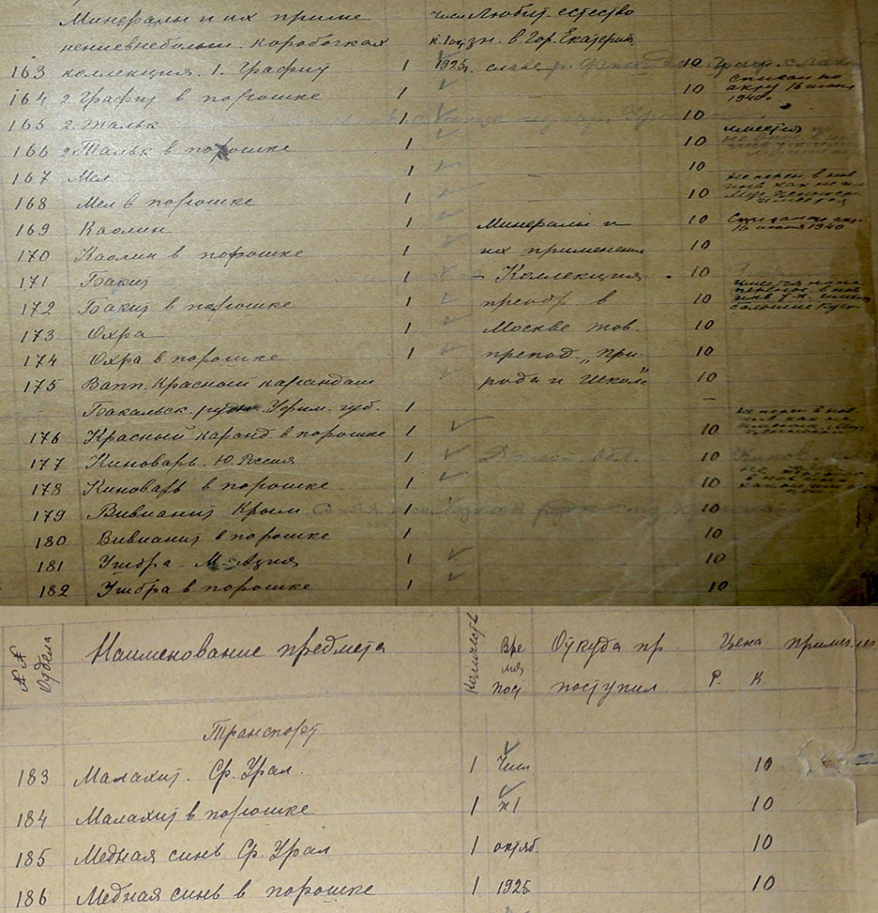 Коллекция «Минералы и их применение» состояла из 24 предметов, разложенных по небольшим коробочкам, и включала, в основном, природные минеральные пигменты, используемые при изготовлении разных видов красок.