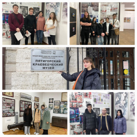 Студенты Института международных отношений направления подготовки «Международная журналистика» (доц. Тоцкая О.В.): Габриелян Э., Довитян Д., Стамболян А., Макоева Р., Бабаджанян М., Епифанов М., Зыбина П., Касьянов О., Ким А., Матуева Б., Предатко В., Туркменова М., Храмогина С. и «Реклама и связи с общественностью» (доц. Ткачева Н.А.): Абачараев С., Панков Д., Сорокина С., Махмудова Н., Губиева Д. посетили «Пятигорский краеведческий музей», один из старейших музеев в регионе, основанный в 1903 г.