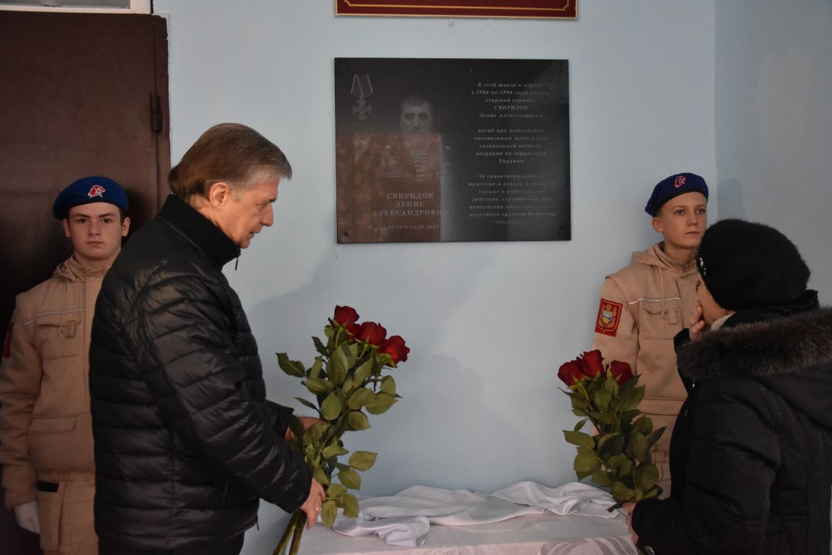 В Михайловске состоялось торжественное открытие мемориальной доски на здании школы № 5 в память о военнослужащем Денисе Свиридове, участнике СВО погибшем при исполнении воинского долга На мероприятии присутствовали: