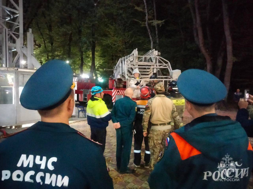 Ранее сообщалось, что в остановившемся на высоте 35 метров аттракционе застряли 6 человек, в том числе ребёнок 7 лет.