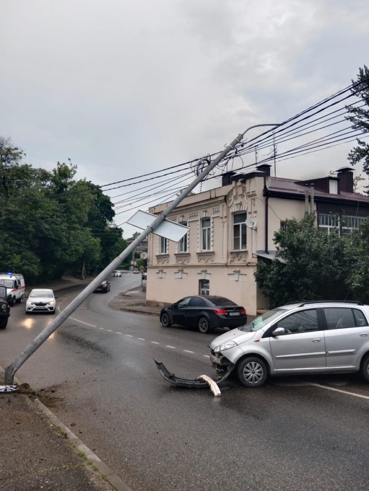 В Кисловодске автомобилистка врезалась в фонарный столб на улице Чкалова, 42.