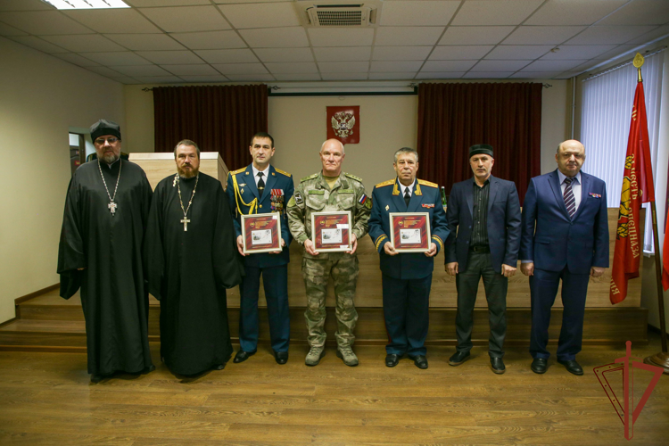 После церемонии на плацу воинской части генерал-полковник Сергей Захаров и генерал-полковник в отставке Анатолий Шкирко вручили государственные награды росгвардейцам, проявившим отвагу и самоотверженность в ходе специальной военной операции. Командующий округом поблагодарил военнослужащих за добросовестно исполненный воинский долг и выразил уверенность, что личный состав центра и в дальнейшем будет достойно выполнять поставленные задачи.