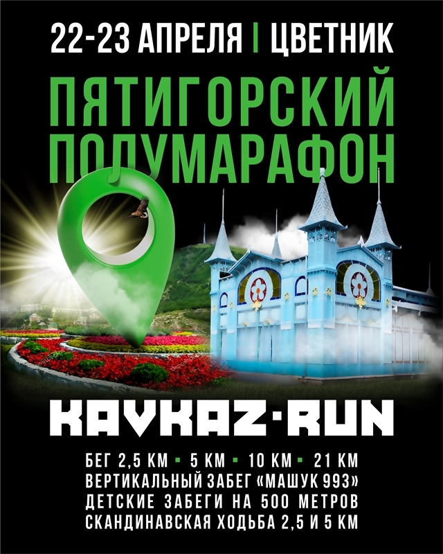 Седьмой массовый любительский забег состоится в городе-курорте 22 и 23 апреля. Стартово-финишный городок расположится в парке «Цветник», а все маршруты пройдут по курортной зоне города. Гора Машук, озеро «Провал», Эолова Арфа, Академическая галерея, место дуэли М.Ю. Лермонтова – бегунам откроются самые красивые достопримечательности курортного Пятигорска.