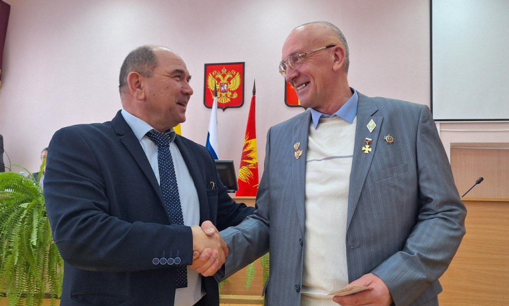 На еженедельной планерке в администрации округа глава округа Г.В. Ефимов вручил знак "Отличник просвещения Российской Федерации" педагогу овощинской школы В.В. Пчеленко.