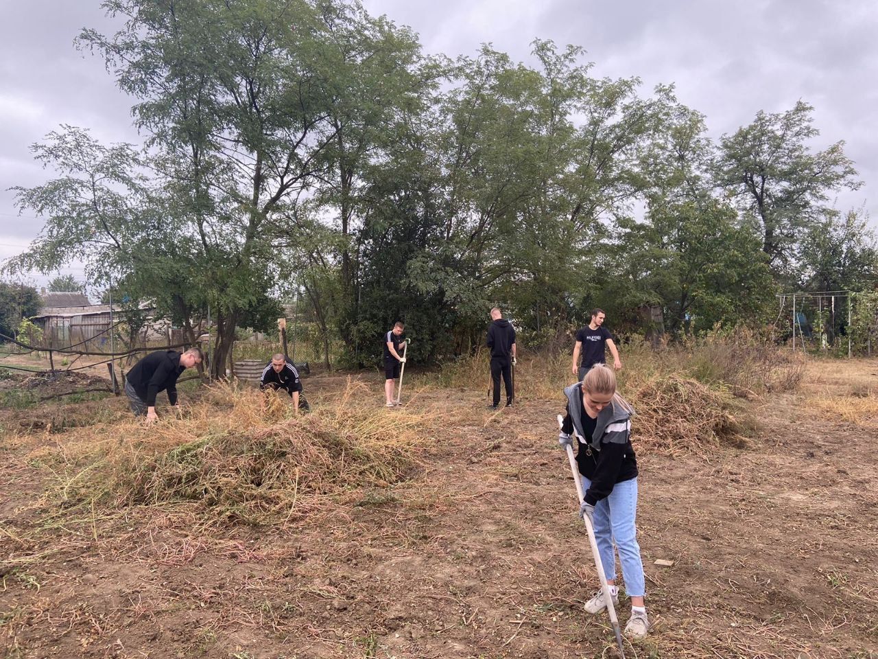 В рамках программы по длительному сопровождению семей участников СВО, реализуемой Георгиевским отделением Штаба #МыВместе Центра молодёжных проектов, учащиеся 10 класса школы №22 села Обильного под руководством учителя ОБЖ Панина Евгения Вячеславовича помогли родным бойца и навели порядок на участке.