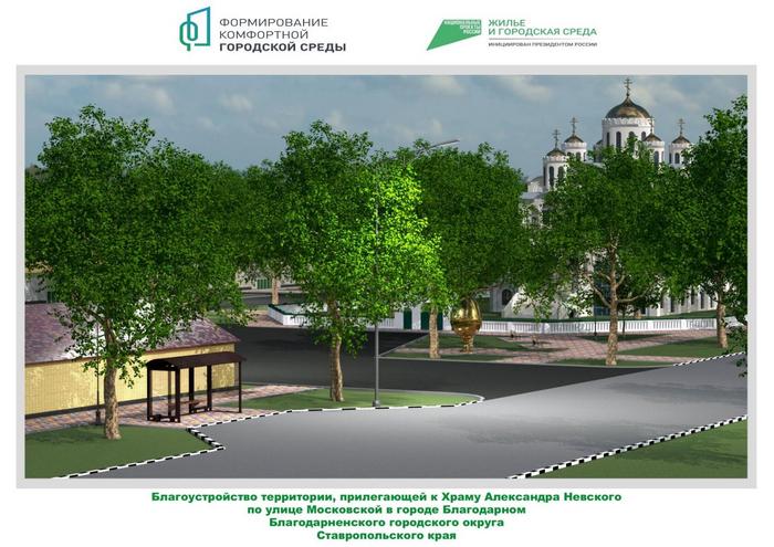 - Благоустройство территории, прилегающей к Храму Александра Невского по улице Московской в городе Благодарном;