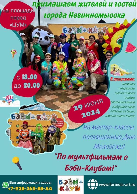 29 июня на площади перед «ЦУМ» «Бэби-клуб» традиционно проведет развлекательную игровую программу для детей и молодежи «Путешествие в страну мультфильмов».