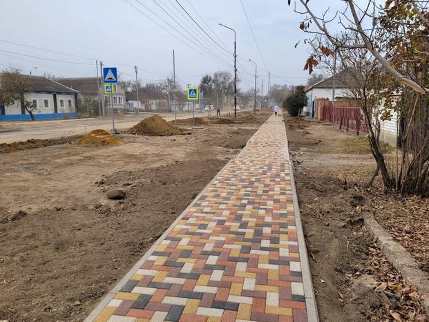 На участке улицы Ленина от улицы Первомайской до переулка Тюленина ведется укладка тротуарной брусчатки, установка бордюрного камня, а в ближайшее время начнется асфальтирование автомобильной дороги протяженностью 750 метров.
