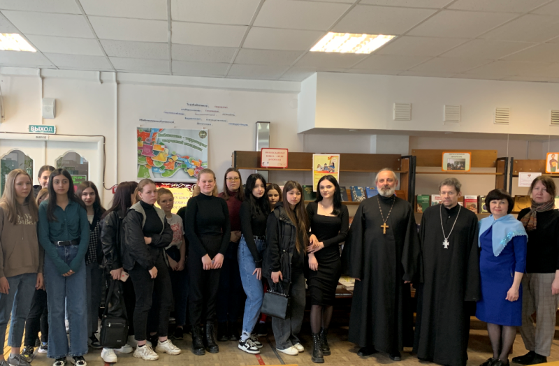 14 марта 2023 года в читальном зале Центральной юношеской библиотеки по-особому светло и уютно. Ведь сегодня именины православной книги, ученье которой «ярче звездочки светит». И хотя праздник этот совсем молодой, отмечается он с 2010 года, но несет в себе важное и большое значение для каждого человека. А потому традиционно библиотекари организуют встречи для молодежи в этот знаменательный день с представителями духовенства Георгиевской епархии. Вот и сегодня на библио-экскурс «Духовных книг божественная мудрость» были приглашены студенты колледжа «Интегралл». А в качестве просветителей, несущих благодарное слово книге, выступили: отец Владимир (Шалманов), руководитель информационно-издательского отдела Георгиевской епархии РПЦ и архимандрит Симеон (Холодков), клирик Георгиевского собора Георгиевской епархии Русско-православной церкви.