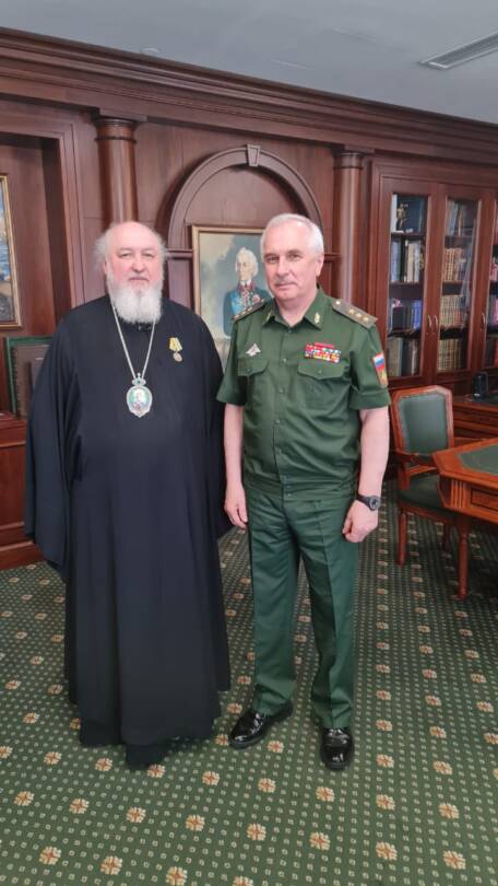 «Благодаря Вашей инициативе и неустанной заботе институт военного духовенства получил новый импульс развития, работа с верующими военнослужащими Вооруженных Сил Российской Федерации в районах проведения специальной военной операции стала неотъемлемой частью работы с личным составом не только штатных, но и нештатных священнослужителей. Под Вашим архипастырским попечением в воинских частях и организациях Минобороны России ведется работа с раненными и семьями сражающихся военнослужащих» .