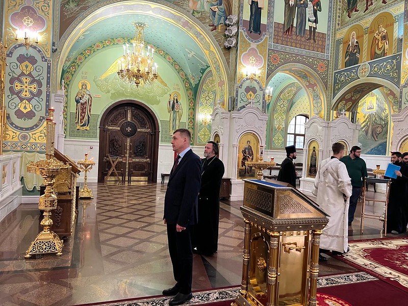 По окончании молебна митрополит Кирилл поблагодарил Юрия Александровича за совместную молитву, вручил икону Господа Иисуса Христа и пожелал помощи Божьей в дальнейших трудах на благо Отечества