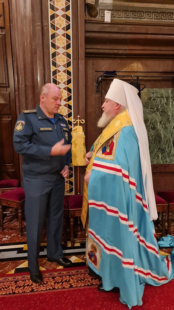 17 сентября 2023 года заместители главы МЧС Александра Куренкова и представители центрального аппарата ведомства посетили богослужение в Кафедральном Соборном Храме Христа Спасителя в Москве.