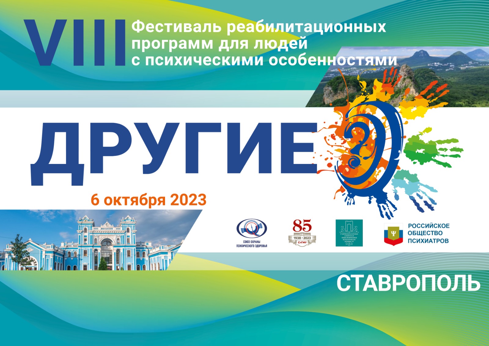 Союз охраны психического здоровья (г. Москва) при сотрудничестве с Российским обществом психиатров, Ставропольской краевой клинической специализированной психиатрической больницей № 1 и Ставропольским государственным медицинским университетом проводит VIII Фестиваля реабилитационных программ для людей с психическими особенностями «Другие?» 6 и 7 октября 2023 года в Ставрополе.