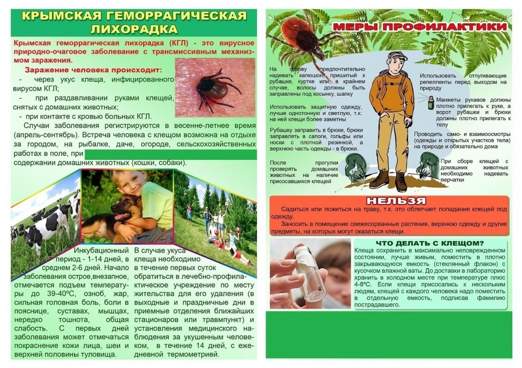 С наступлением теплой погоды повышается активность иксодовых клещей , переносчиков Крымской геморрагической лихорадки ( КГЛ ) и клещевого боррелиоза. В это время клещи выходят с зимовки и начинают активный поиск прокормителя. Заметно активизируются они в марте. Просим Вас быть очень внимательными и соблюдать меры профилактики.